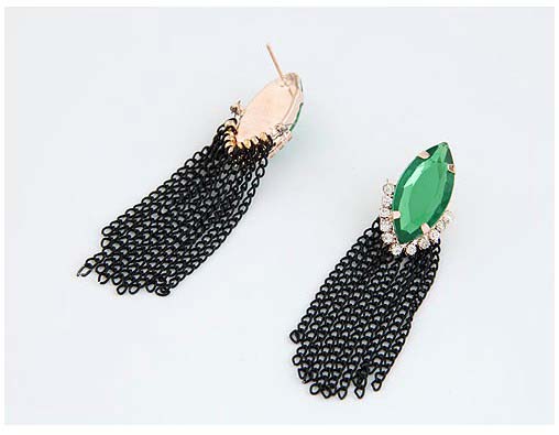 They envy you already give them something to talk about, polish your look off with these emerald green earrings encase with stones, and chains for an edgy look.
